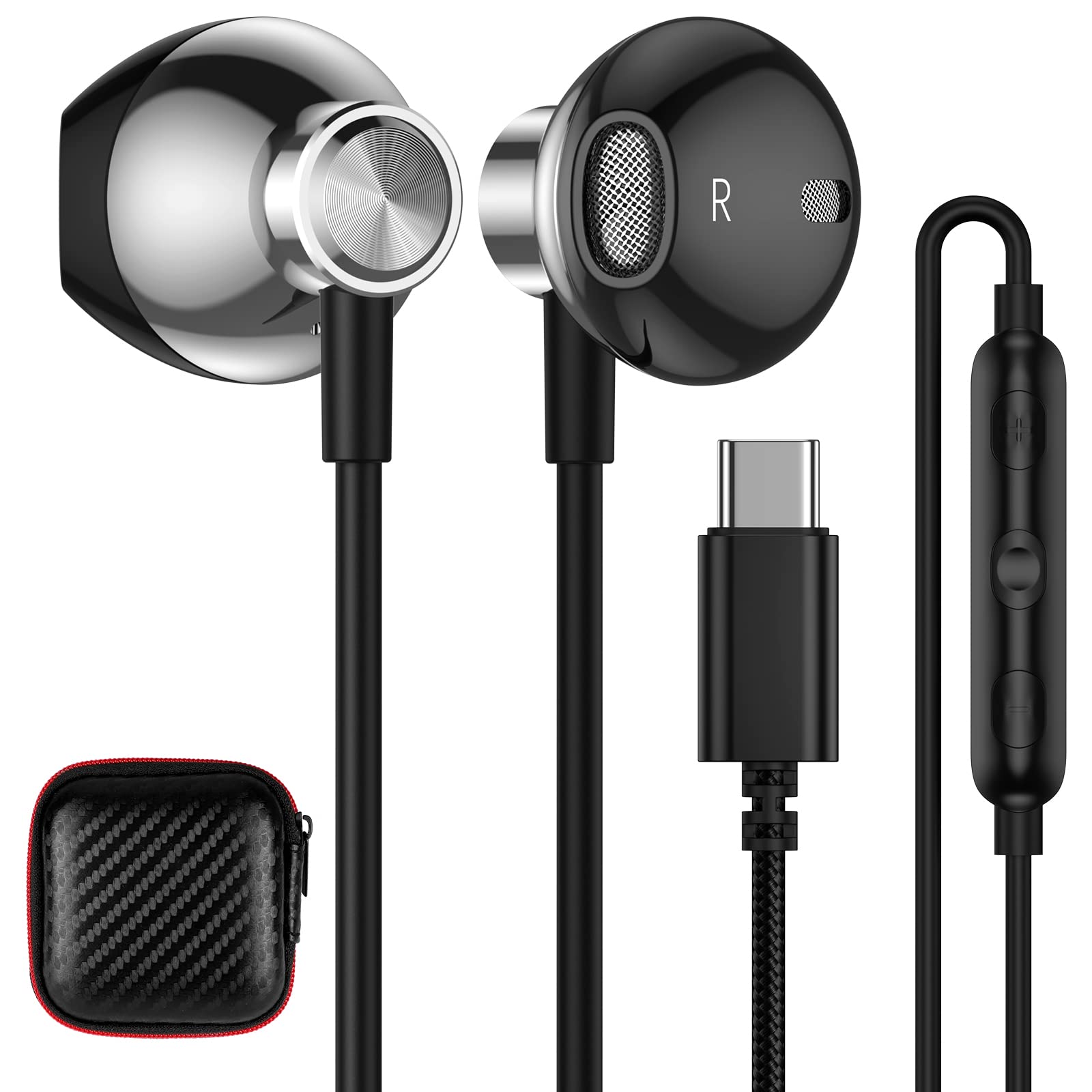 Cuffie USB C per iPhone Air 17 16e 15 Pro Max,Auricolari USB C con cavo HiFi Stereo con Microfono Semi In Ear Cuffie per Samsung Galaxy A16 A17 A34 …